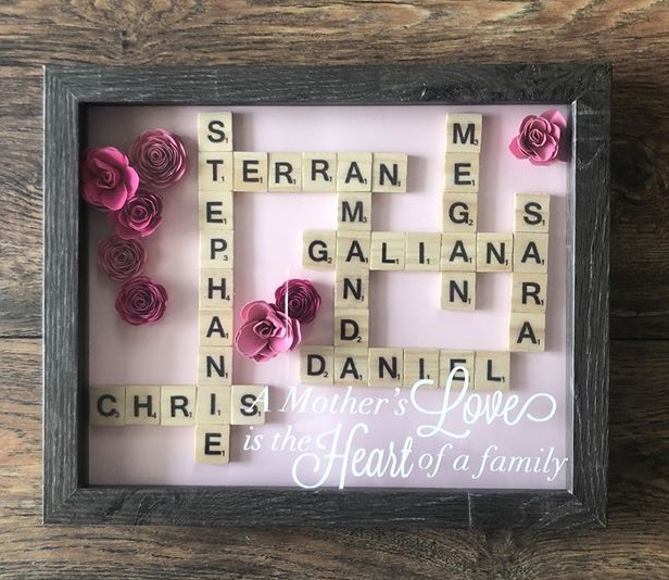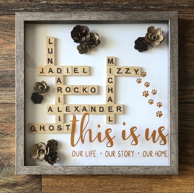 Scrabble In Deutschland war das Spiel sehr schnell ein Erfolg, Doch mit den kleinen Steinchen mit Buchstaben kann man Ein Familienrahmen mit allen Namen zum Beispiel.